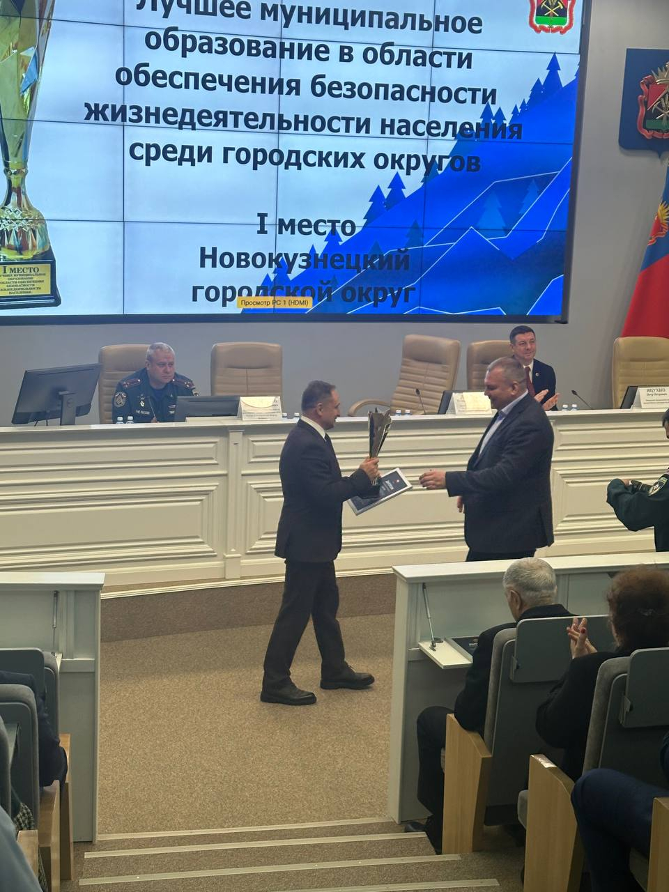 Плодотворная организованная работа города Новокузнецка, направленная на обеспечение безопасности населения от чрезвычайных ситуаций разного характера, не осталась без внимания Правительства Кузбасса и по итогам работы в 2025 году Новокузнецкий городской округ признан как: «Лучшее муниципальное образование в области обеспечения безопасности и жизнедеятельности населения в 2025 году среди городских округов». Главе города были вручены Диплом Правительства Кузбасса за I место и Кубок.