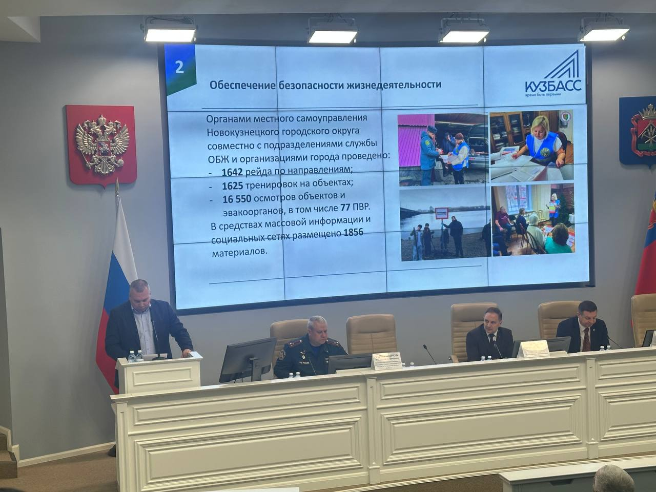 С докладом о наиболее значимых достижениях при выполнении комплекса мероприятий по гражданской обороне, защите населения и территории Новокузнецким городским округом выступил Глава Новокузнецка Ильин Д.П. Денис Павлович подчеркнул, что комплекс задач по защите населения и территории от чрезвычайных ситуаций, гражданской обороне, обеспечению пожарной безопасности и безопасности на водных объектах выполняется в тесном взаимодействии со службами муниципального бюджетного учреждения «Управление по защите населения и территории» г.Новокузнецка всеми комитетами и управлениями администрации и учреждениями города. Приоритетным направлением данной работы является обеспечение безопасности жизнедеятельности населения.