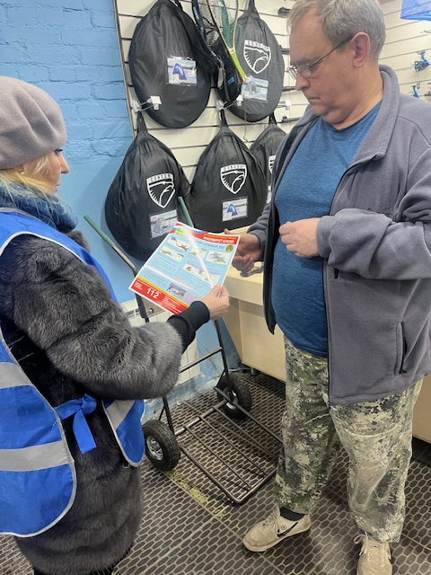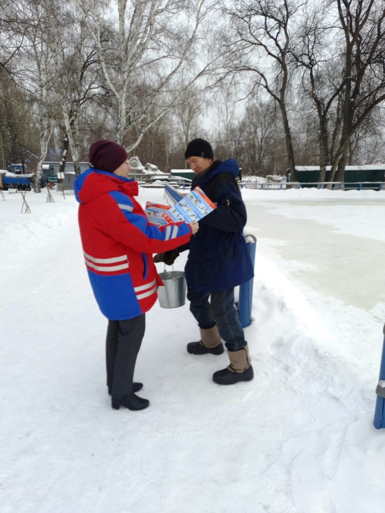 В Орджоникидзевском районе были осмотрены прибрежные зоны реки Томи, карьеры № 3 и 4 и карьеры садового общества «Голубая лагуна». Рейды были проведены ведущим специалистом отдела по району службы ОБЖ МБУ «Защита населения и территории» г. Новокузнецка Попковой Л.В. и главным специалистом отдела ЖКХ,Б и С администрации района Грушевской В.Н. Кроме того, с целью напоминания правил безопасности нахождения на тонком льду в месте торговли рыболовными изделиями (магазин «Белый камень» по проспекту Шахтеров,26) были выданы информационные памятки для распространения среди покупателей – большая часть которых является рыболовами любителями. При посещении магазина участники акции бедовали с покупателями об опасности тонкого льда.