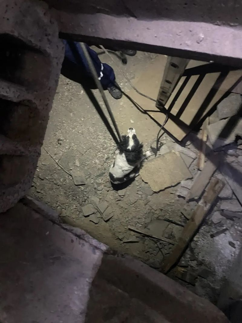 Вечером того же дня поступил сигнал от ЕДДС: в заброшенном здании застряла собака. Сама выбраться не могла. Спасатели применили аварийно-спасательный инструмент, аккуратно разобрали завалы и вызволили животное.