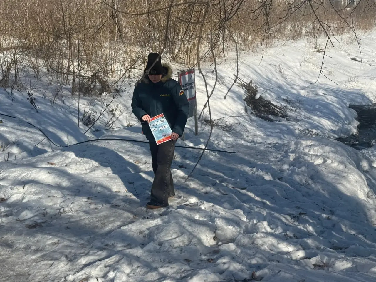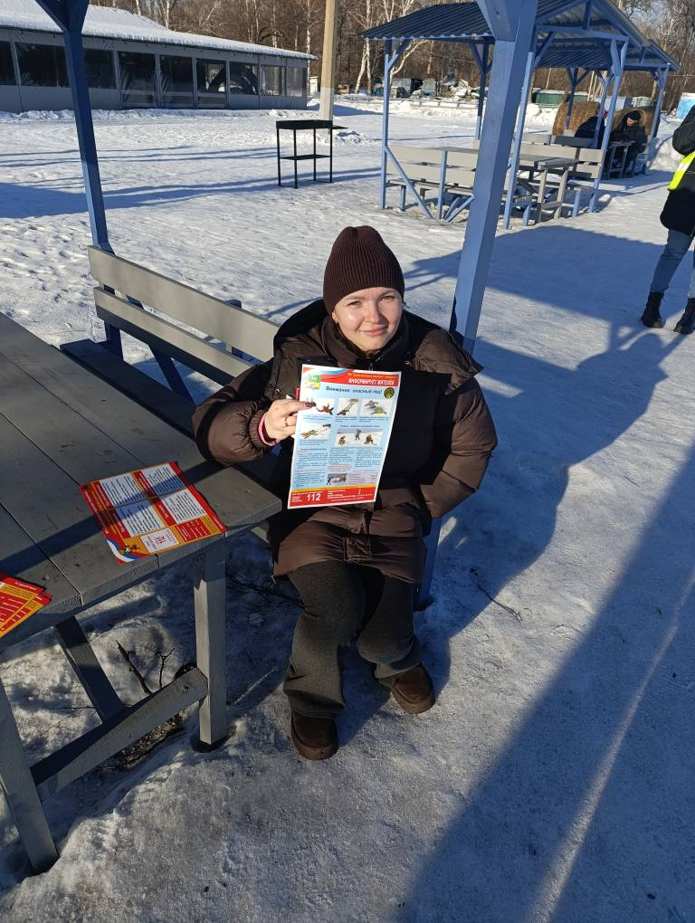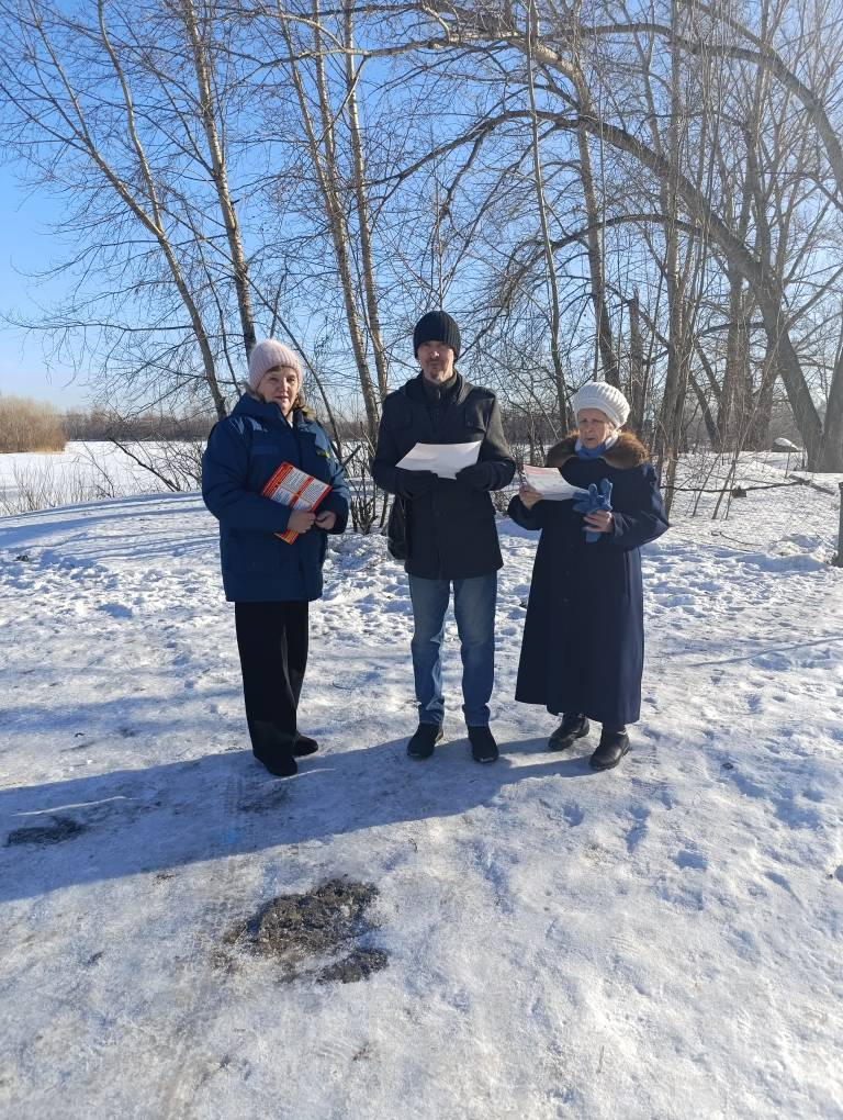 - по берегу реки Томи в пределах административной границы района (Топольники, Топольники-1, Топольники-2). Рейд провели начальник отдела по Кузнецкому району службы ОБЖ МБУ «Защита населения и территории» г. Новокузнецка Овчинникова В.В. и главный специалист - секретарь административной комиссии Мигаль О.А. Они беседовали с отдыхающими и вручили им информационные памятки. Установленные ранее знаки на месте. Толщина льда 80-90 см.;