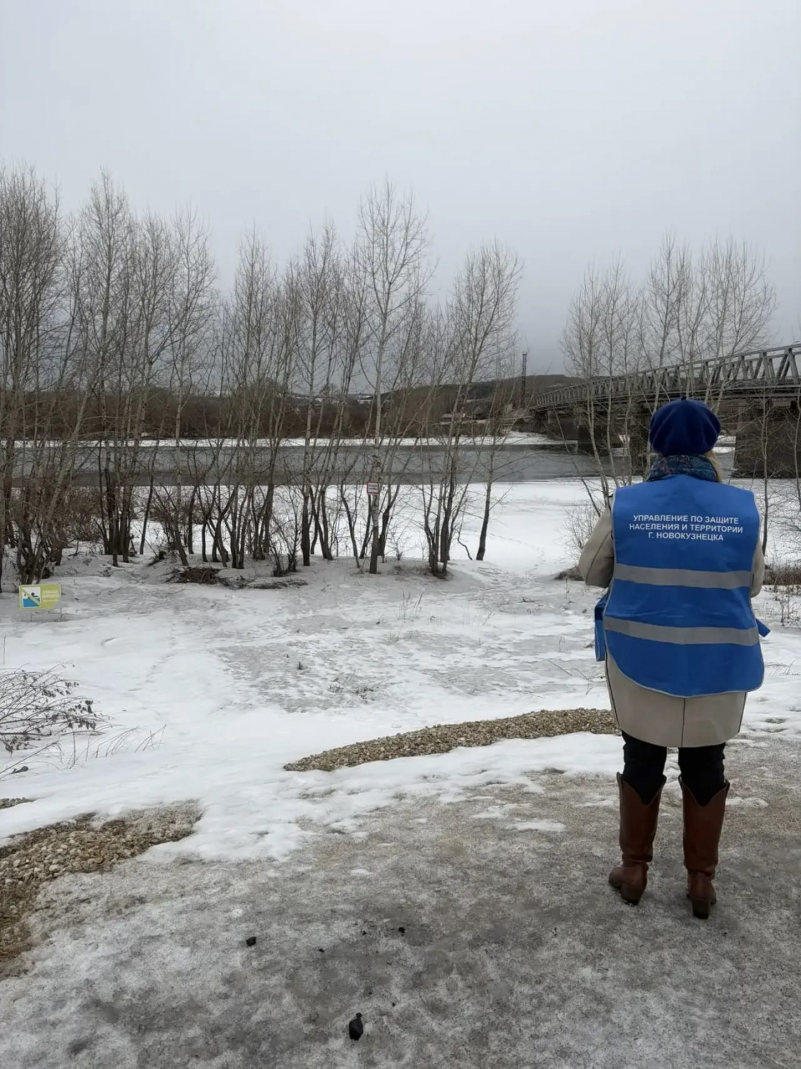 В Кузнецком районе начальник отдела по району службы ОБЖ Овчинникова В.В. совместно с представителями районной администрации осмотрели карьеры с/о Кульяновка, технологический канал Кузнецкой ТЭЦ, реку Томь в пределах административной границы района. Установлен информационный аншлаг (Осторожно – тонкий лёд») и запрещающий знак (Проход по льду запрещен).
